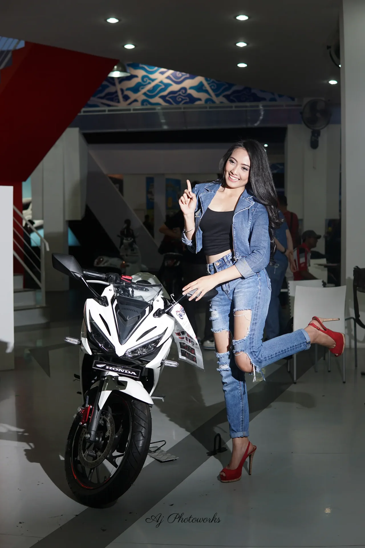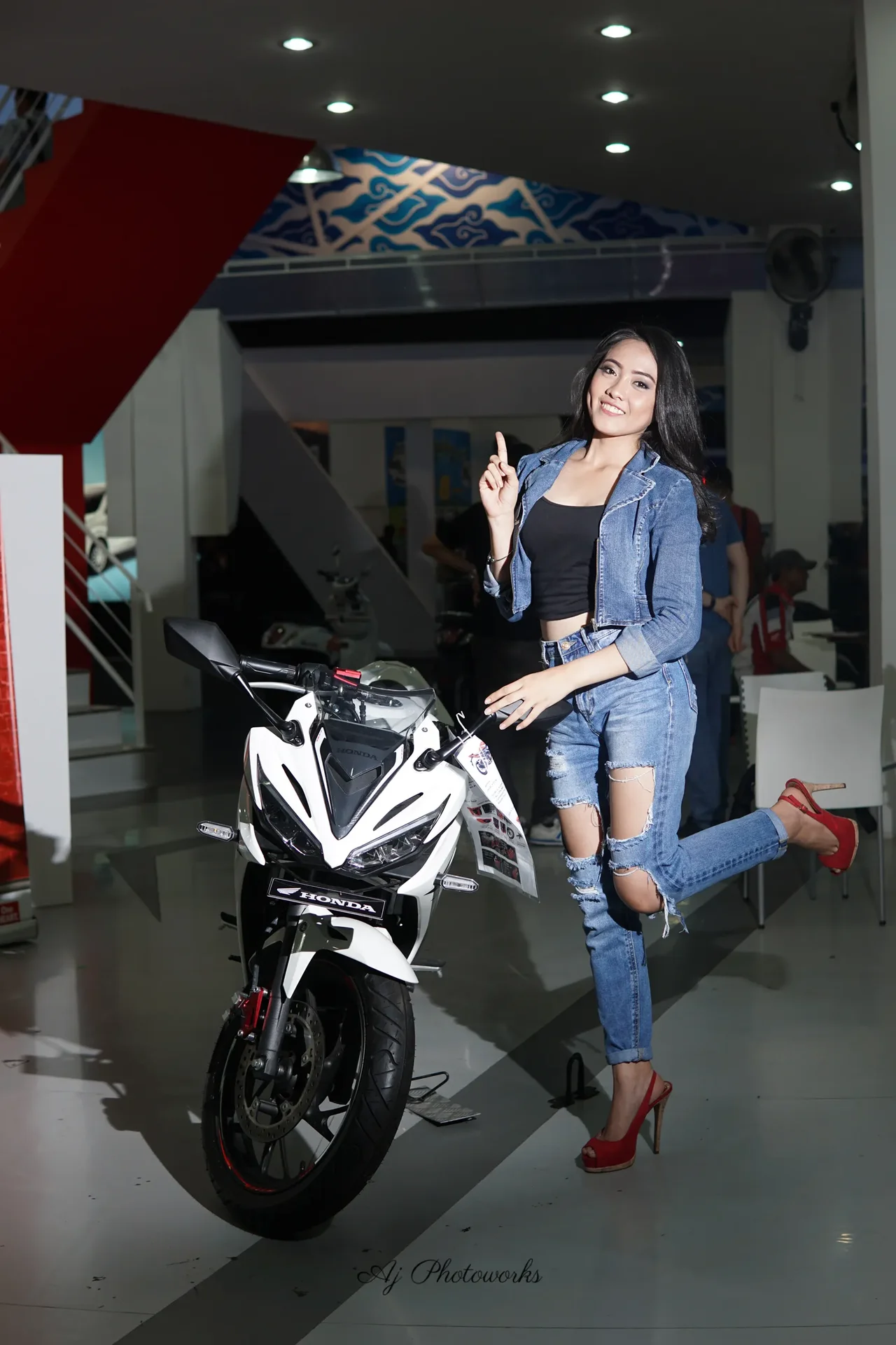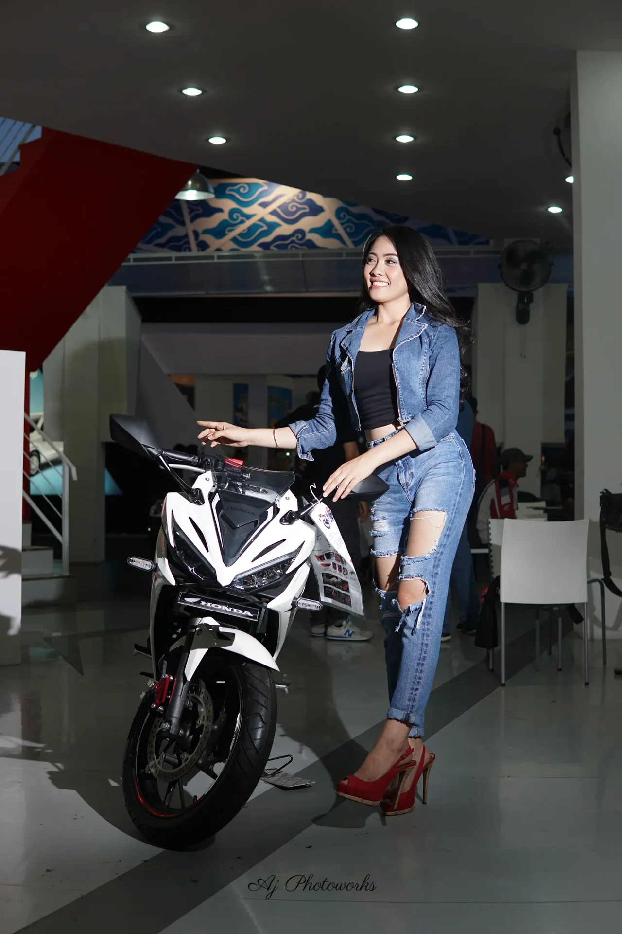 A blend of edgy fashion and sleek design, showcasing modern motorcycling culture through vibrant streetwear and a striking urban backdrop.