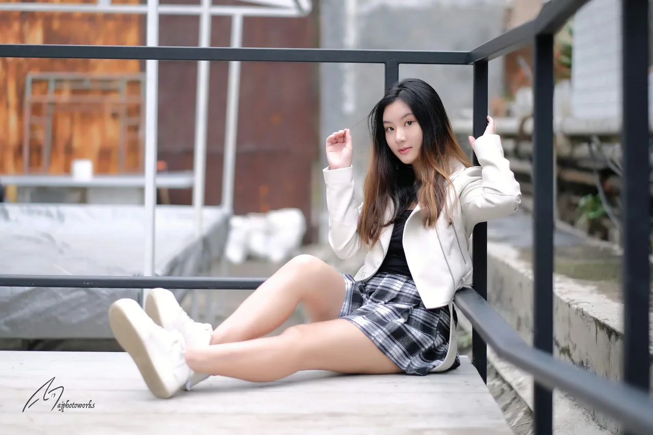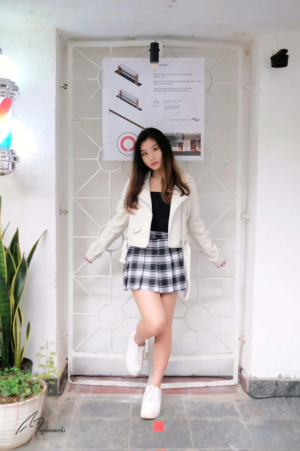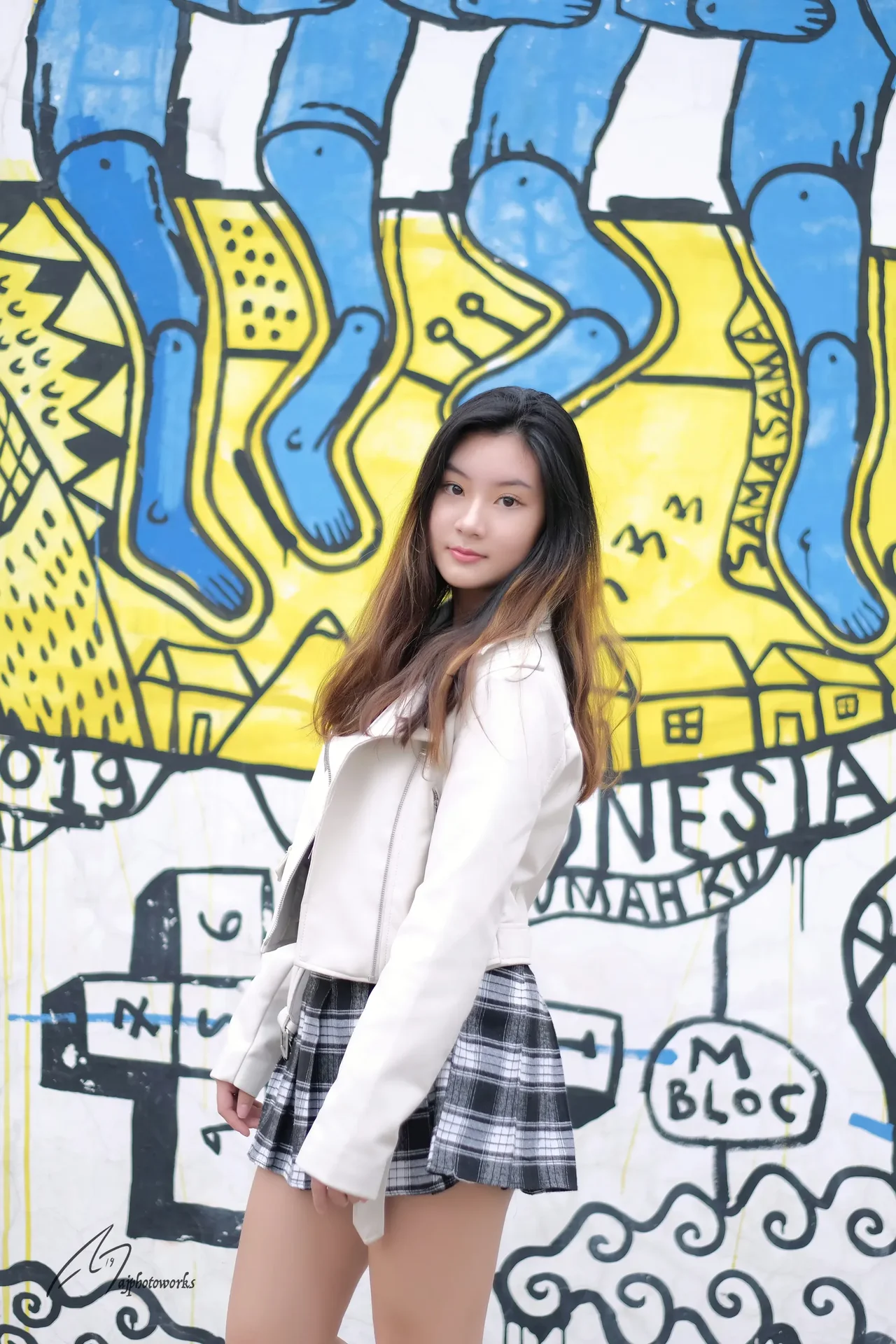 Urban fashion meets vibrant street art: A modern portrait of edgy elegance in monochrome and color.