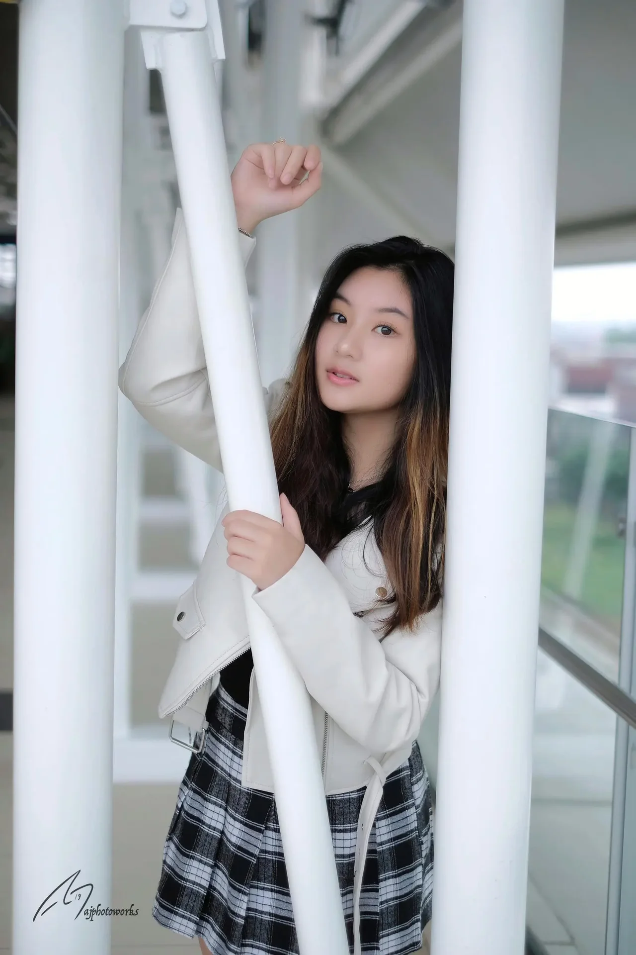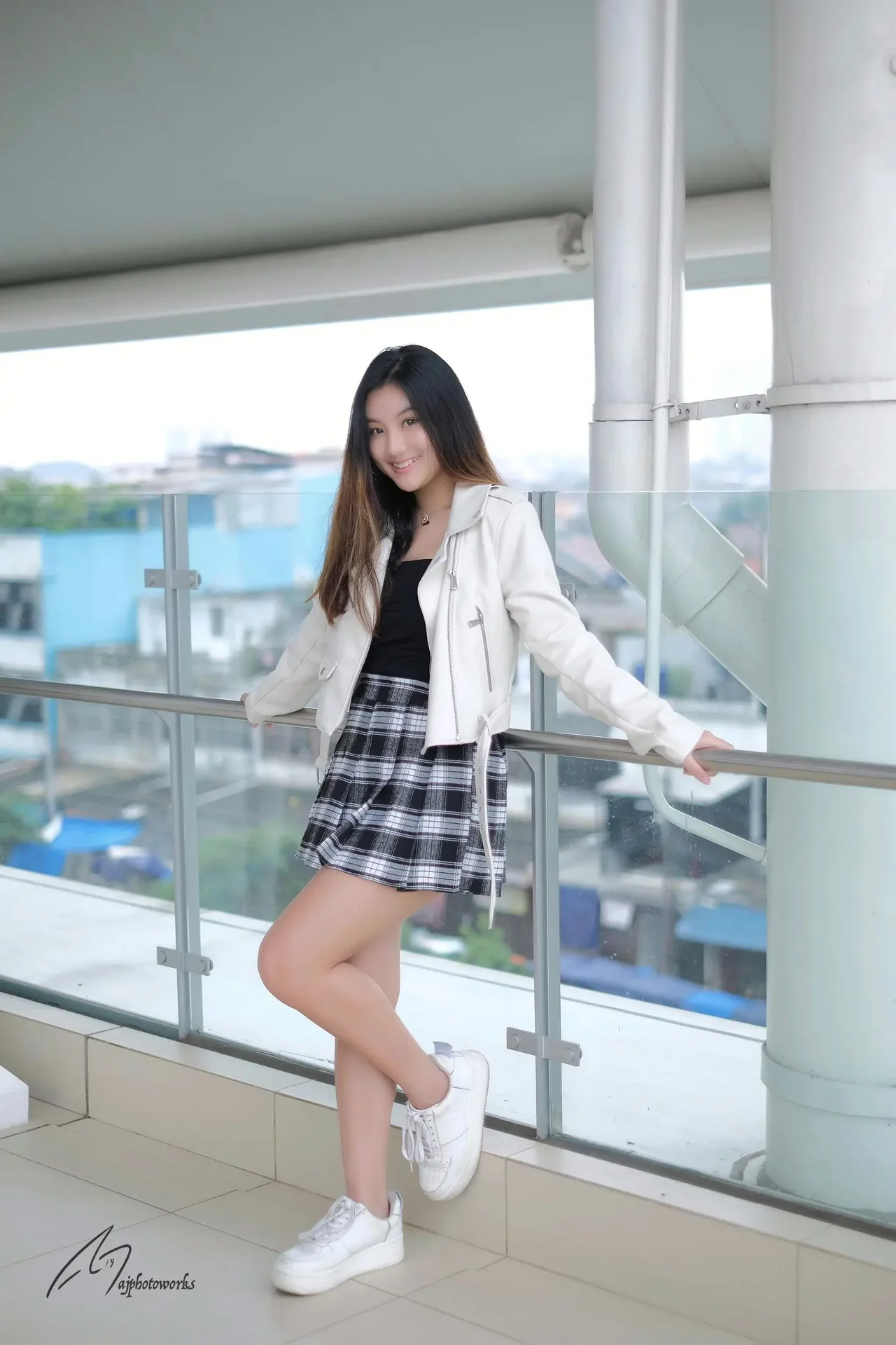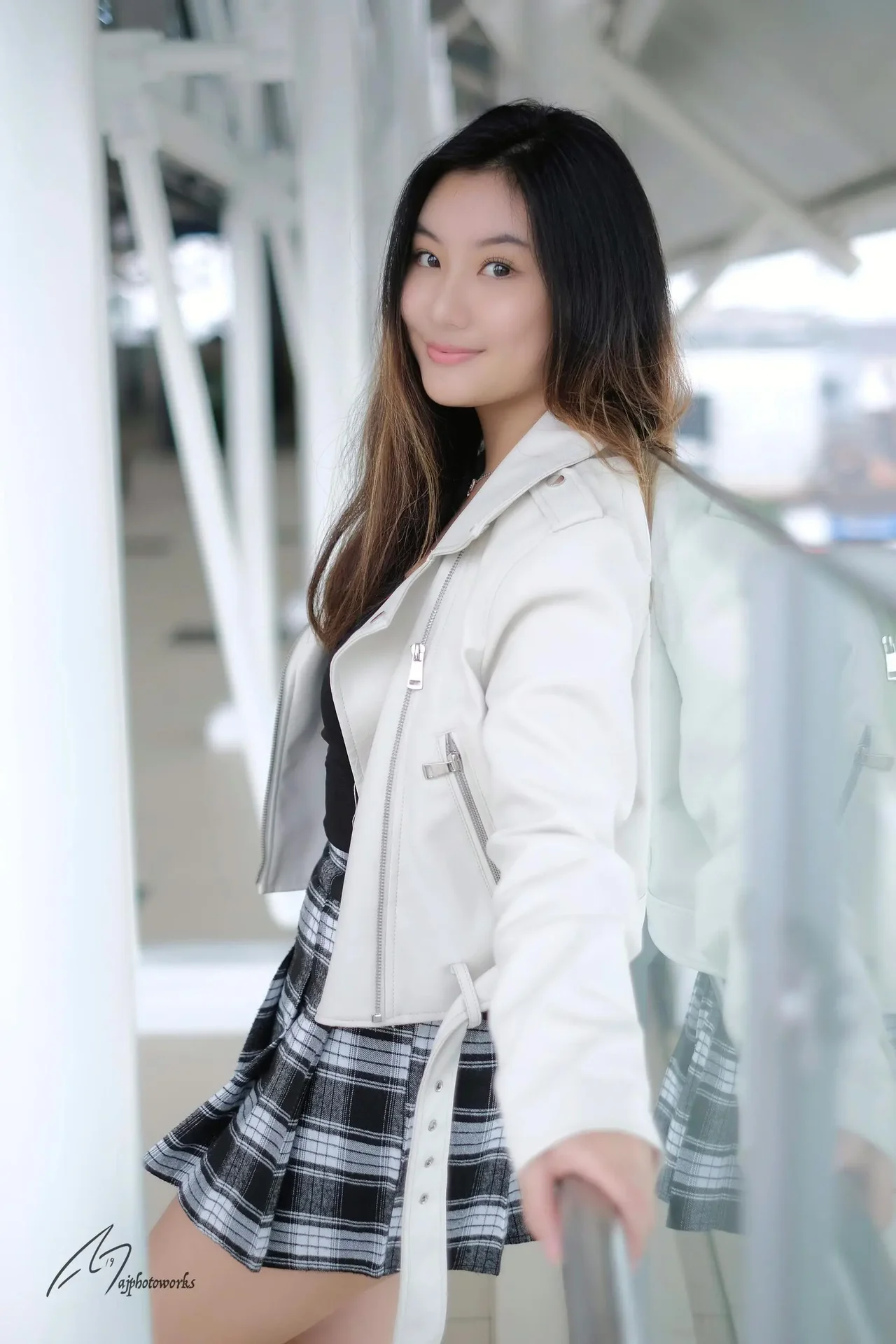 White and black intertwined in urban elegance, a blend of playful confidence and modern charm.
