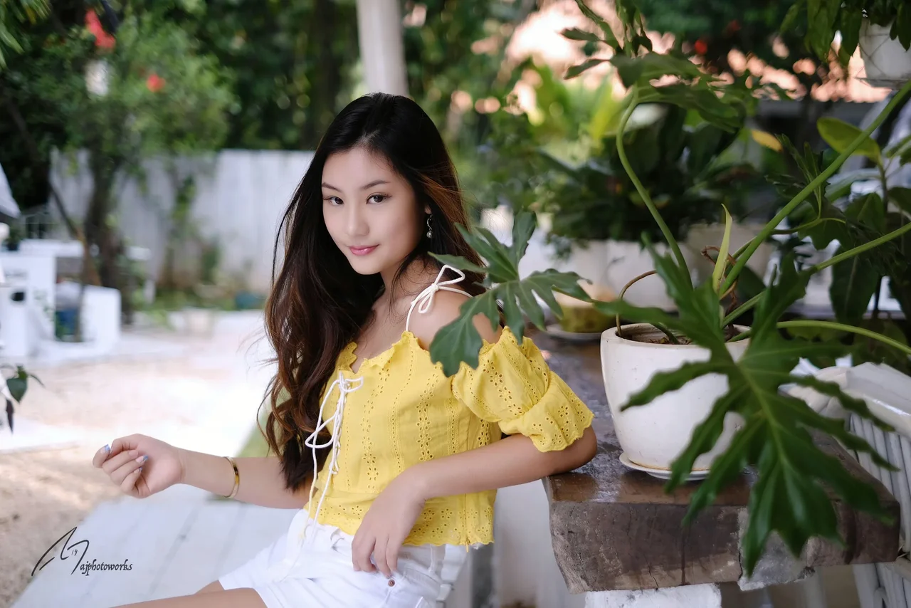 Sun-kissed and serene. Capturing the beauty of youth in a lush garden setting.