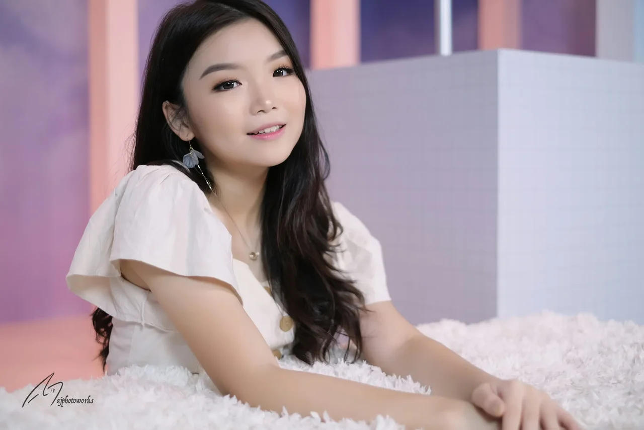 Soft elegance in a studio setting with fashion and portrait focus