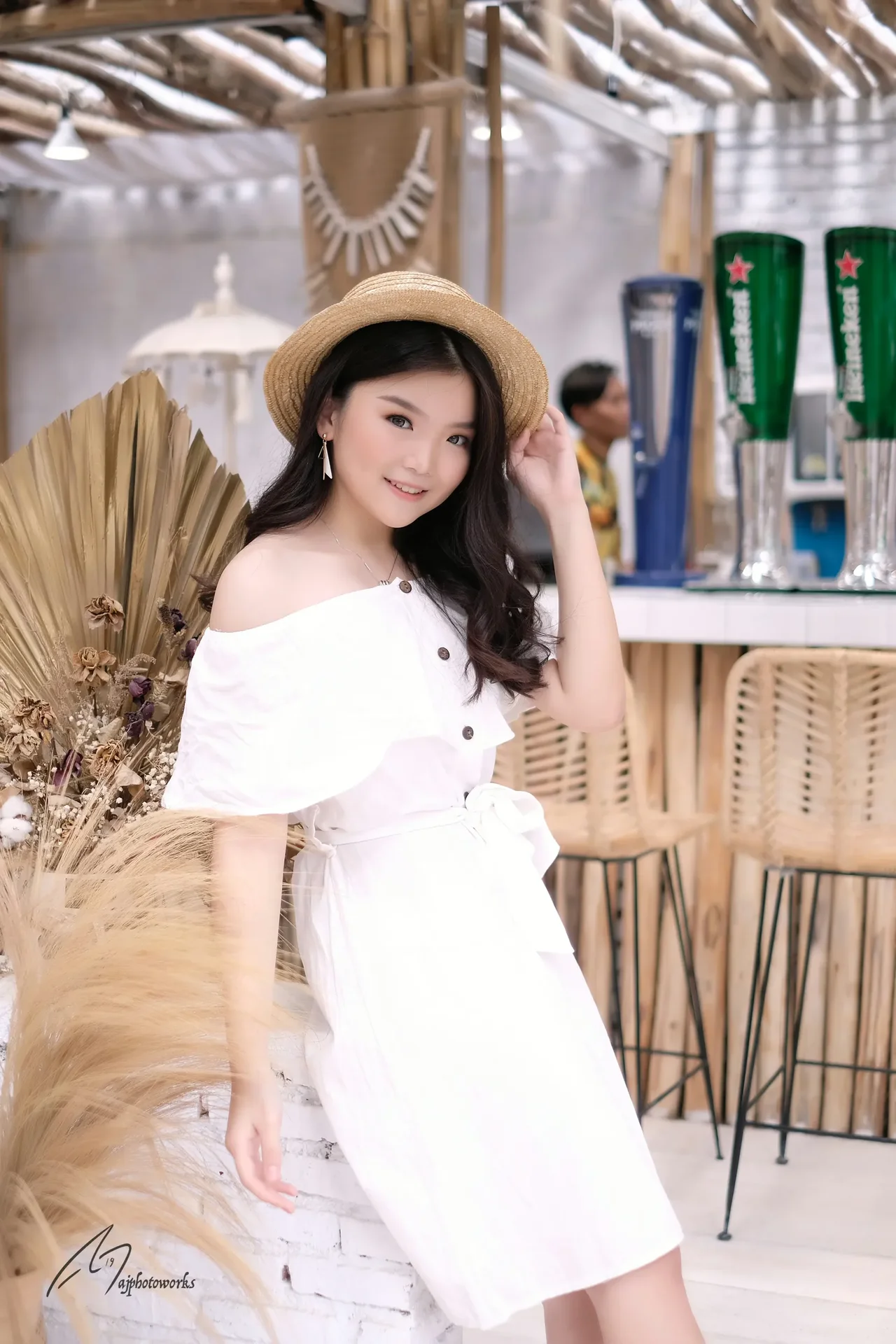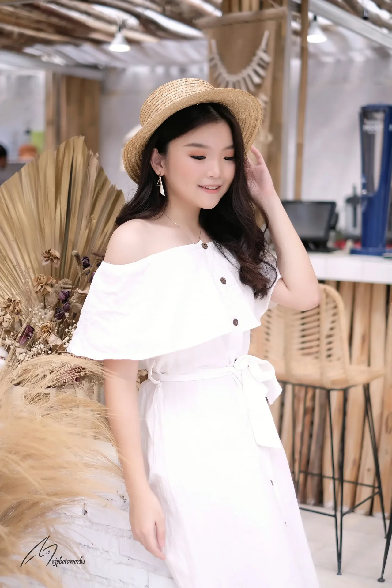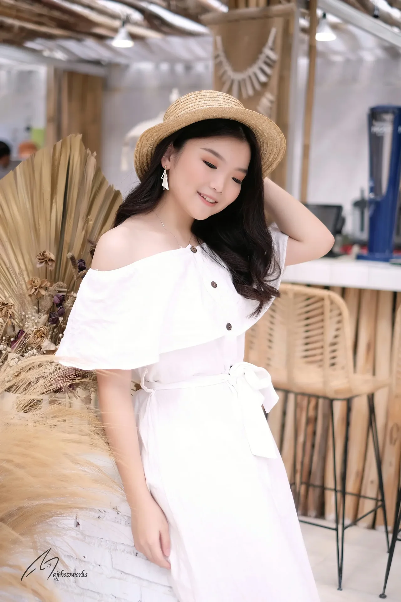 Elegance in simplicity embodies timeless charm, where a serene smile and sunlit warmth create an atmosphere of joyous tranquility.