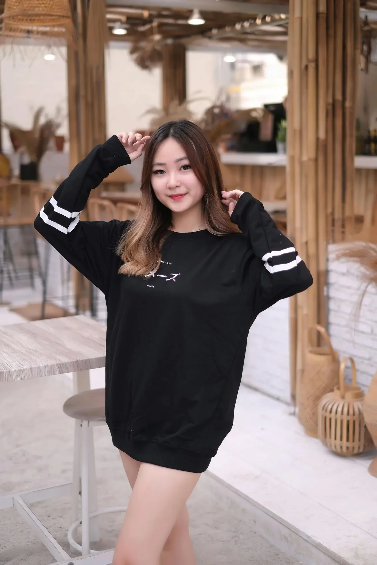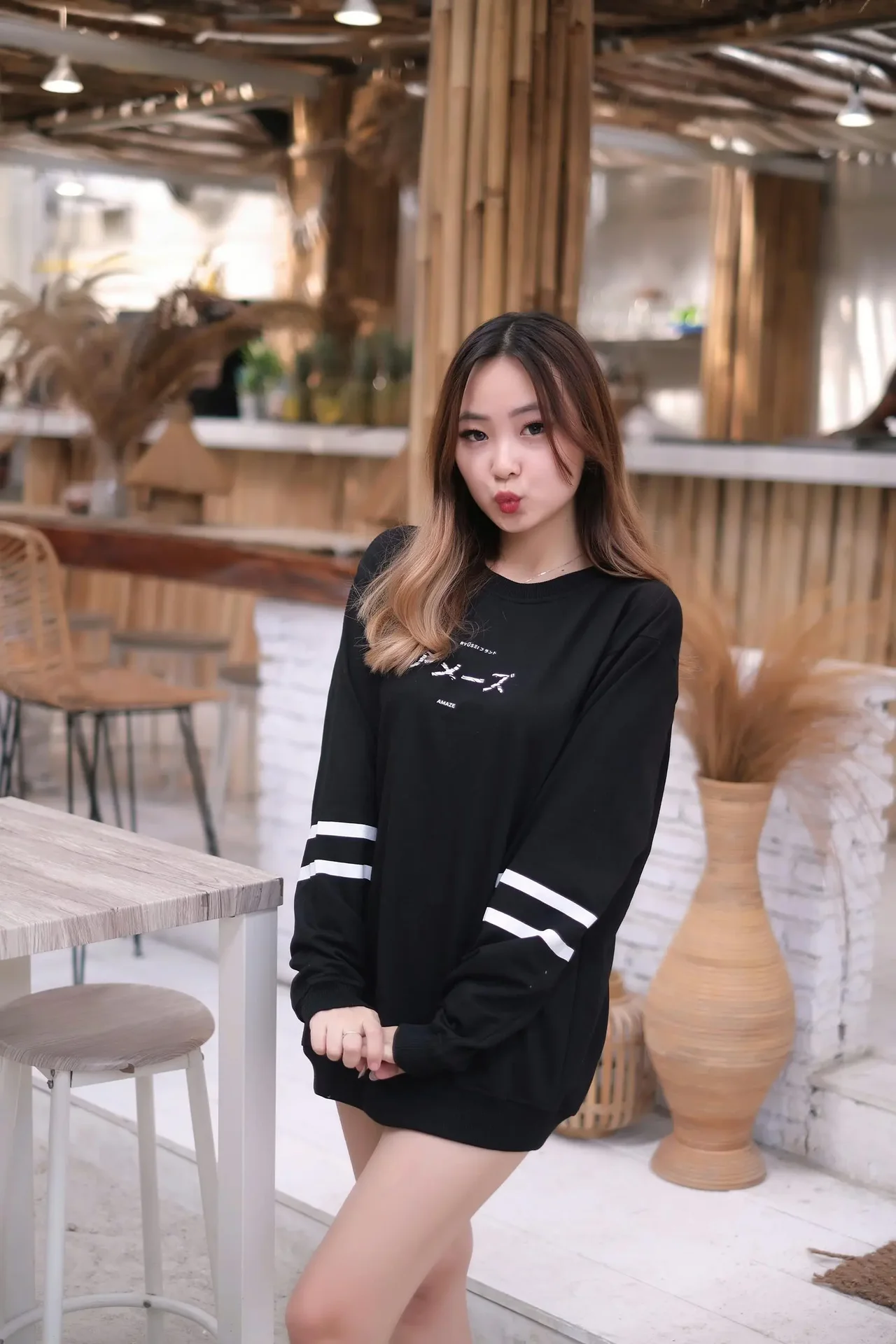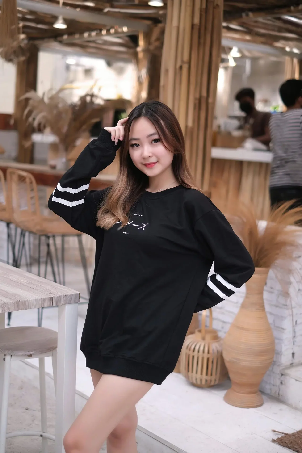 Effortless style meets organic simplicity in a serene café setting.