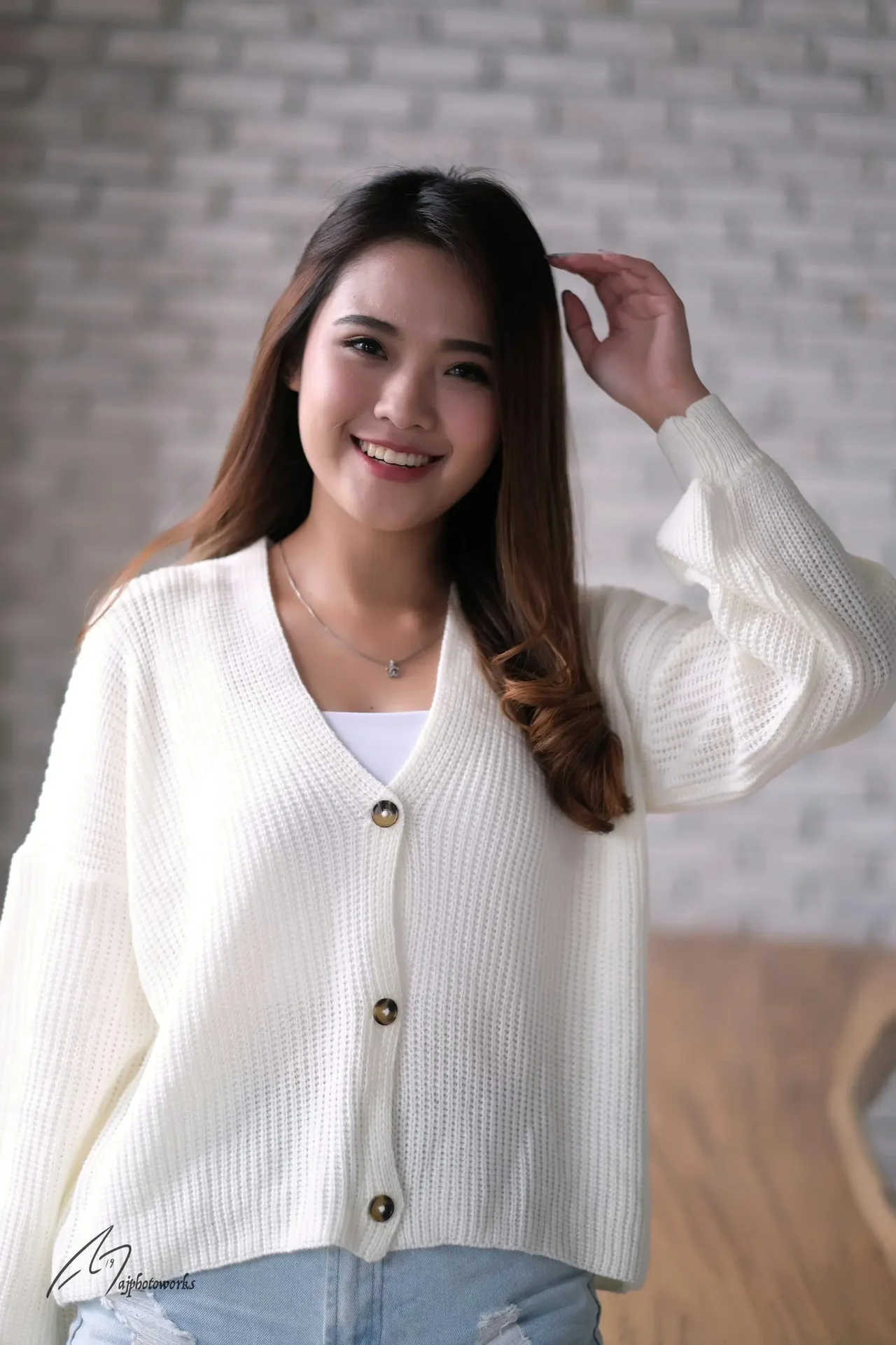 Contemporary fashion portrait blending casual denim, cozy knitwear, and textured environments in a modern studio setting.