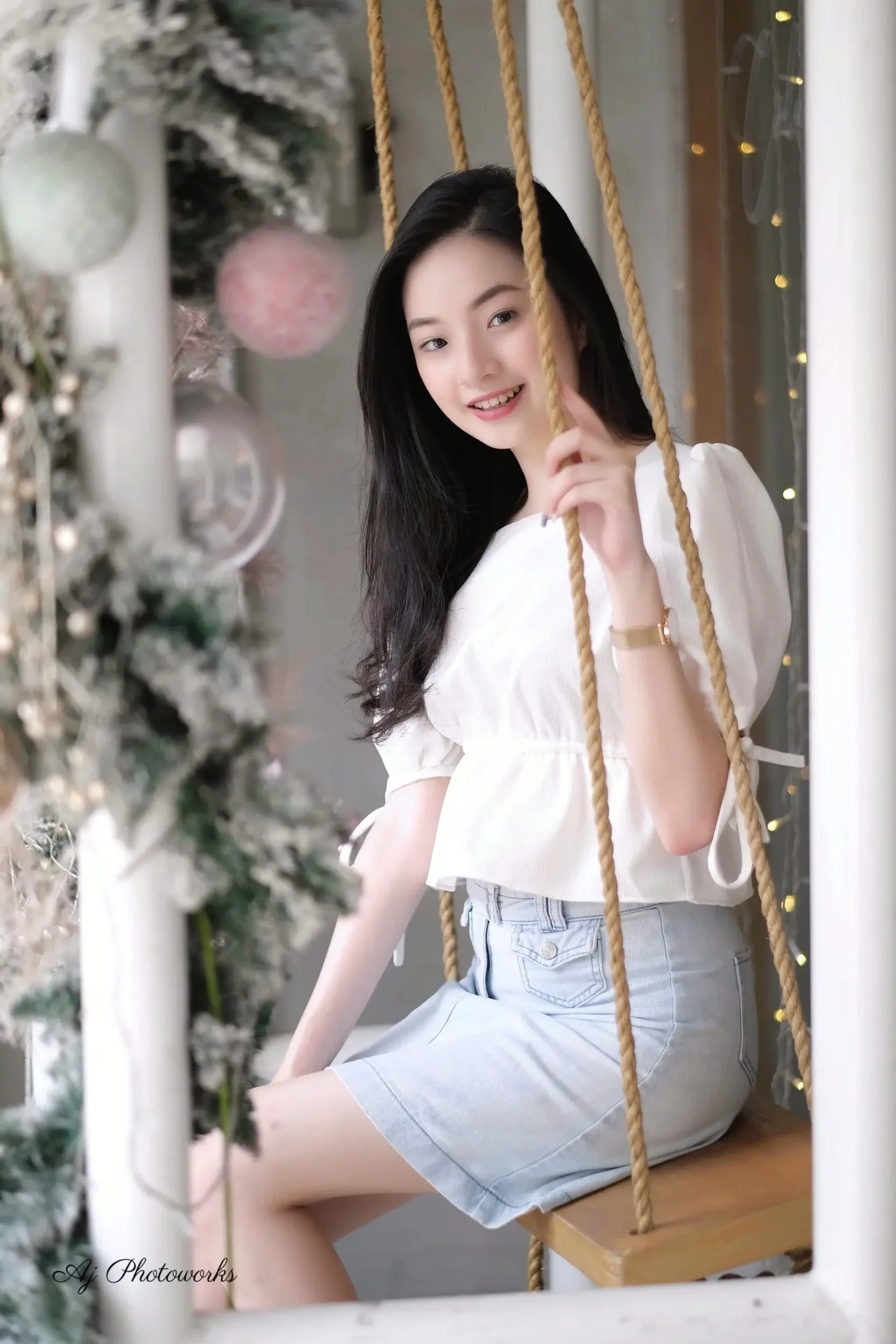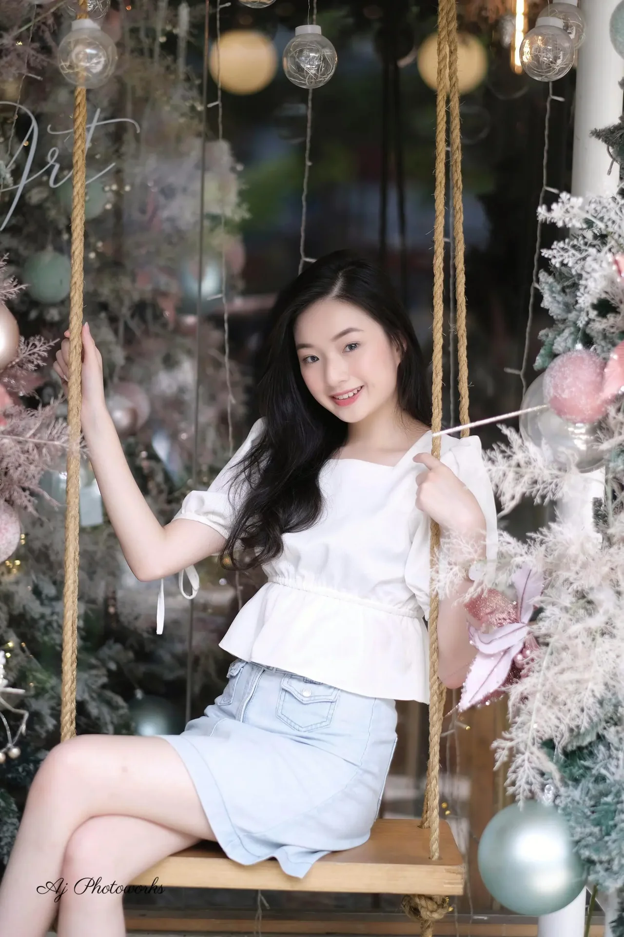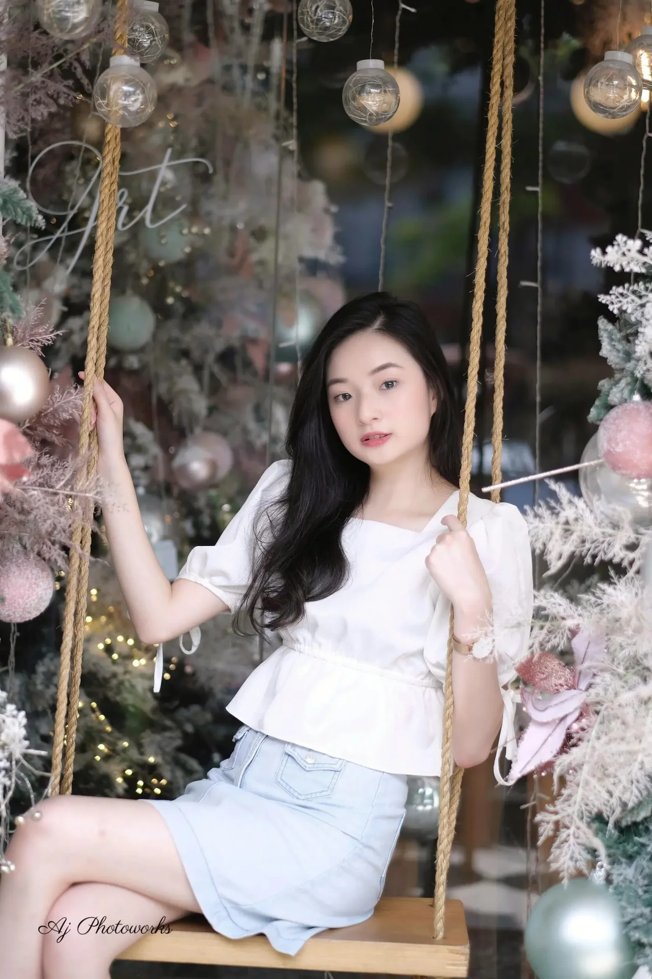 Holiday serenity captured in portraiture, blending festive charm and casual elegance.