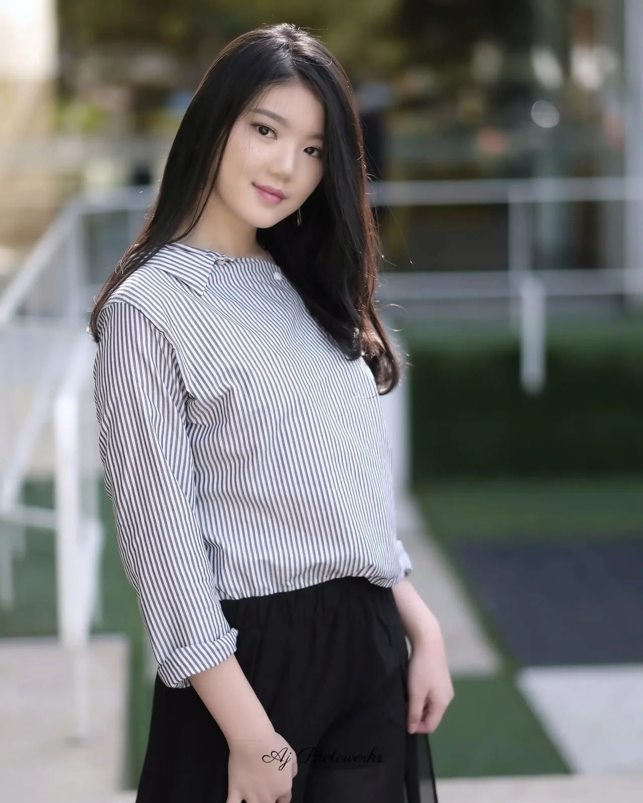 Elegant simplicity meets vibrant expression in this outdoor portrait of contrasting styles and emotions.
