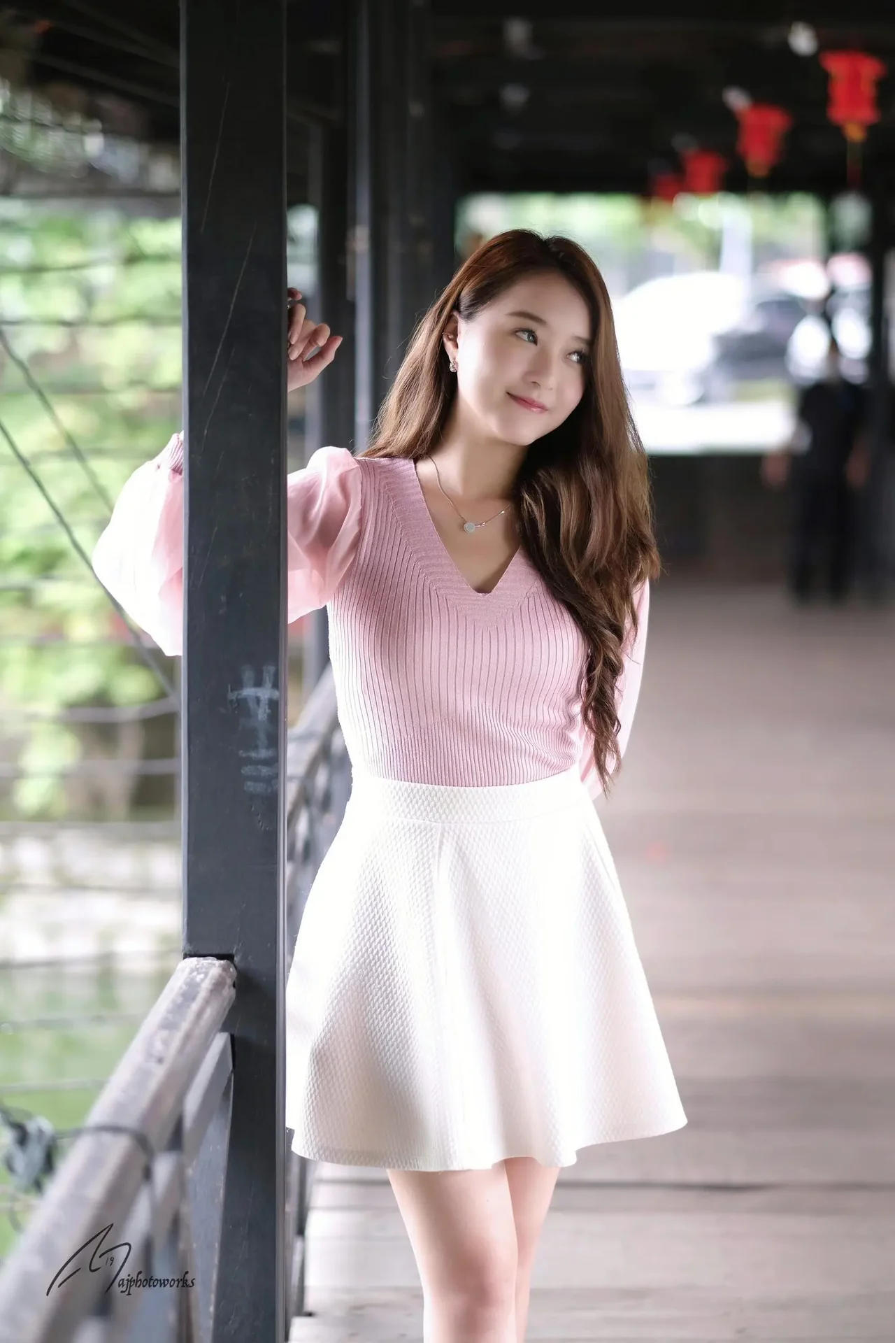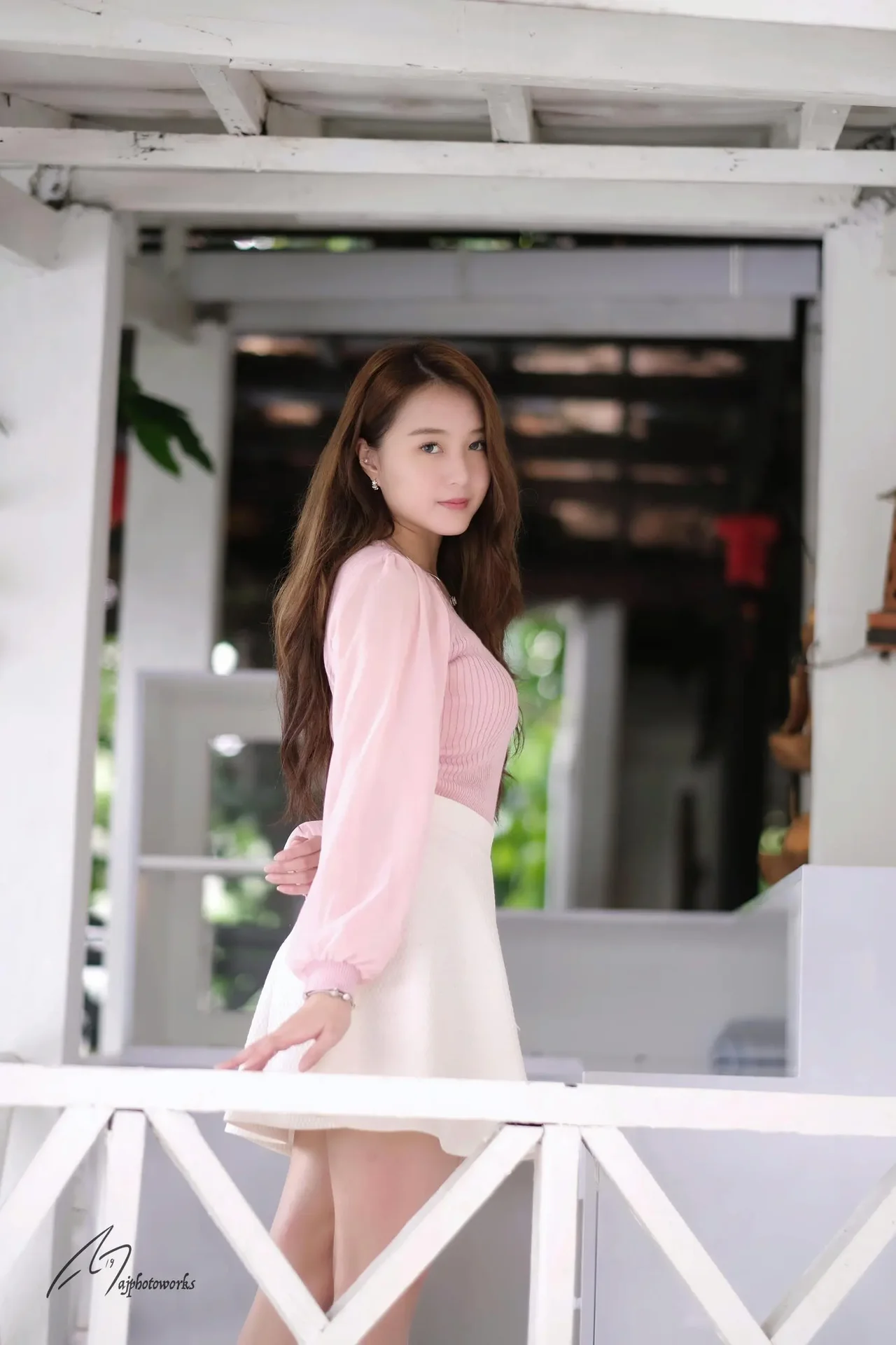 Elegance in everyday moments: A harmonious blend of pastel hues captures natural charm and casual style.