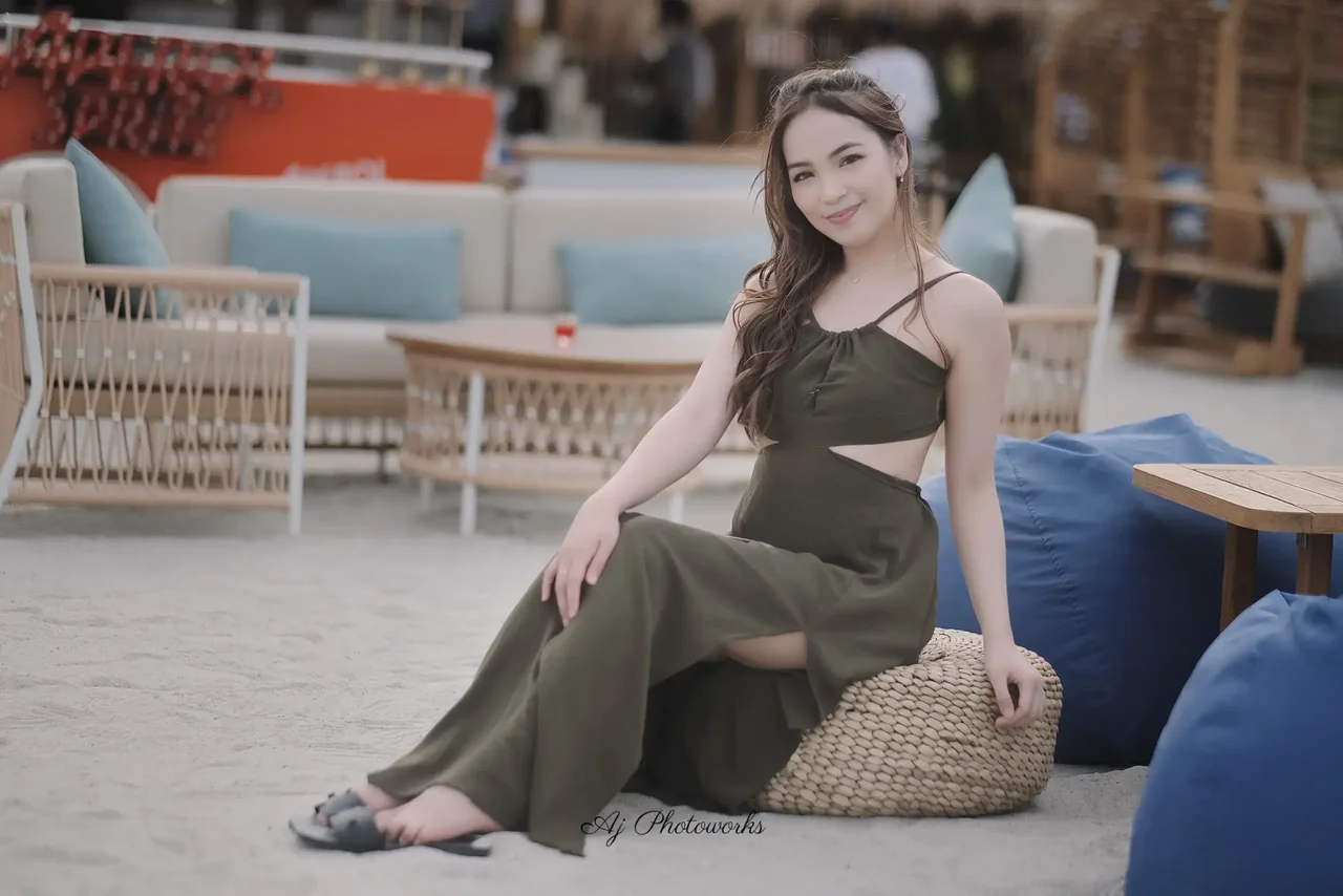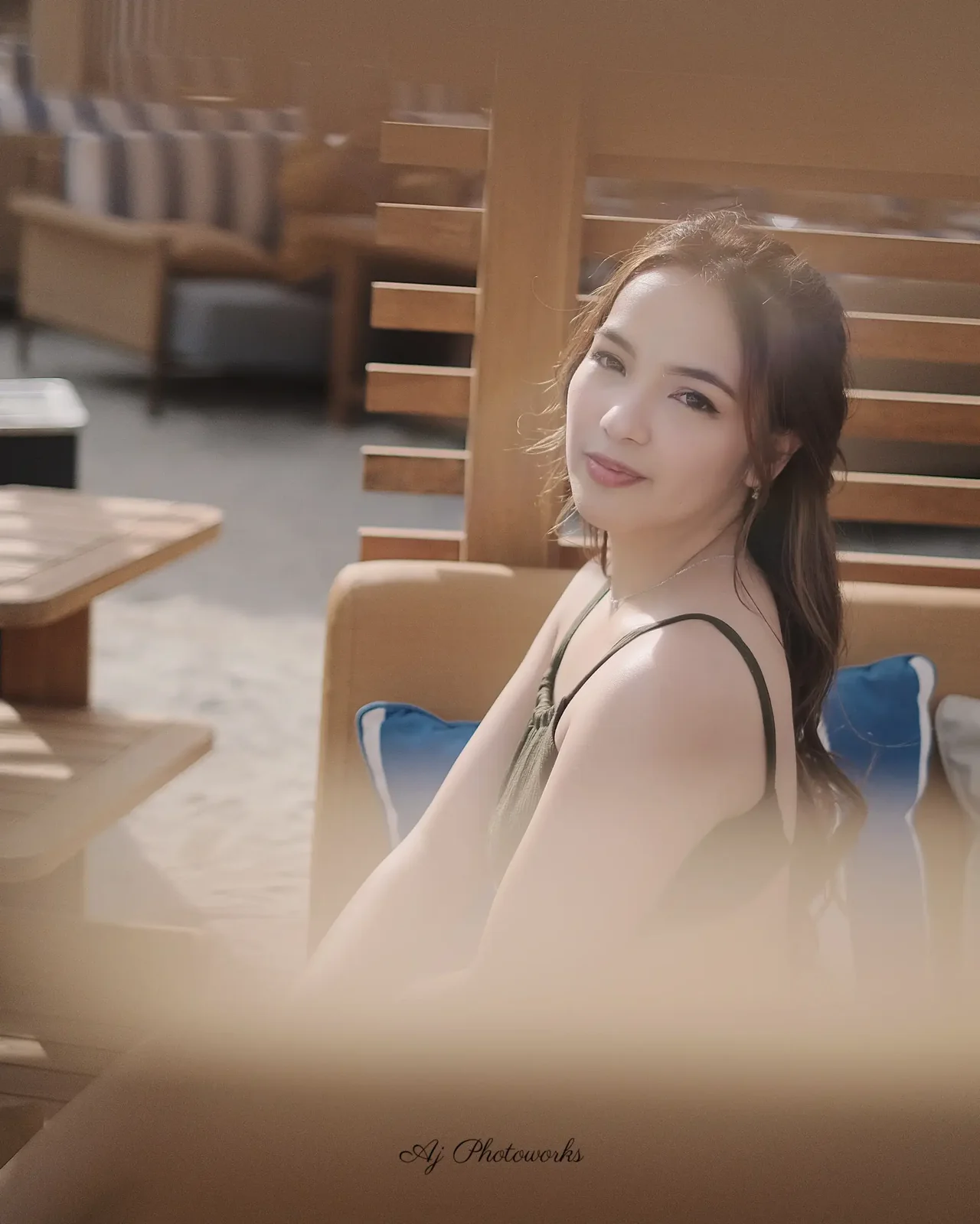 Olive whispers of tranquility, where light dances through woven wood and cushions cradle calm. A study in minimalist elegance, wrapped in soft warmth.