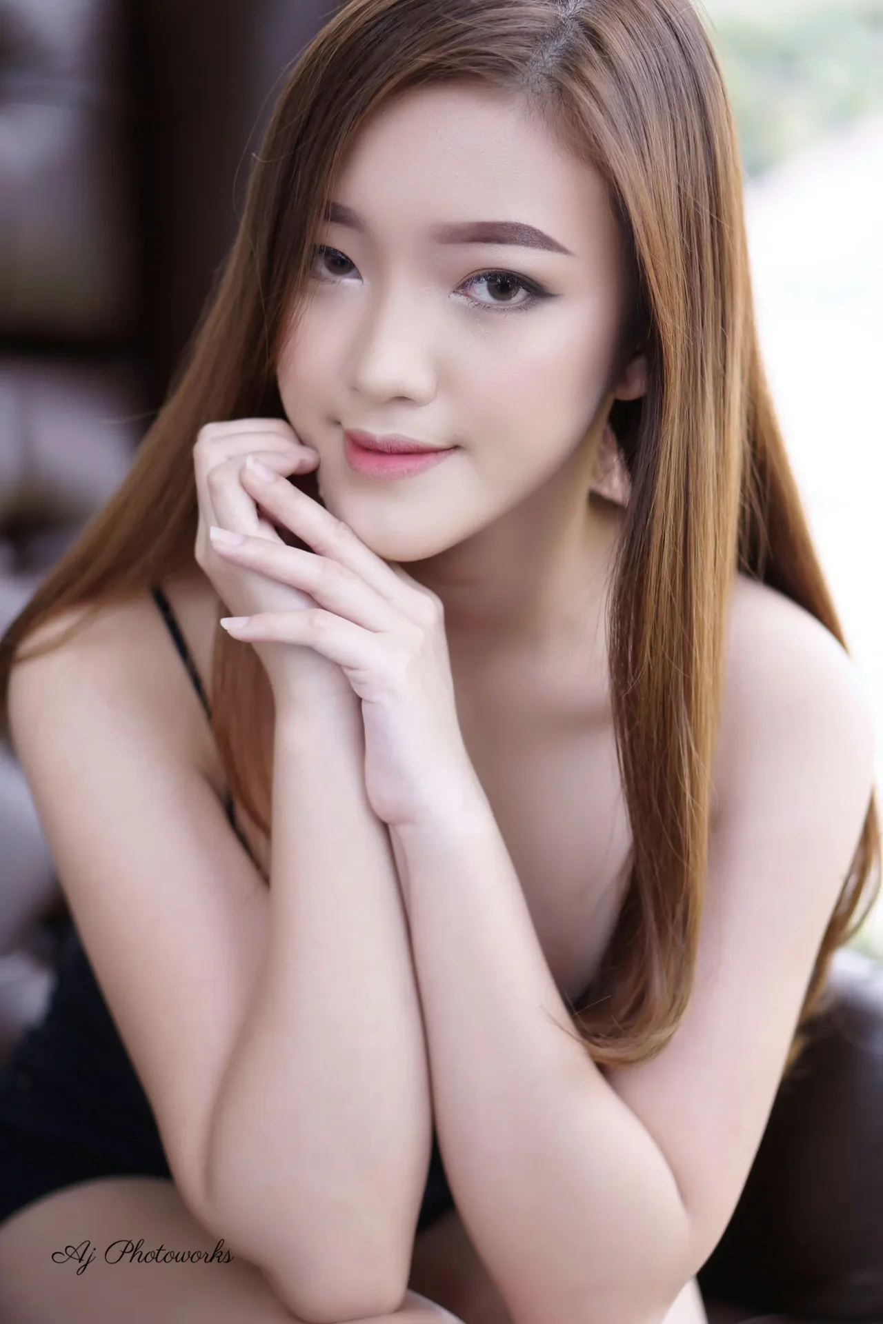 Elegantly posed in a black sleeveless dress against cinematic lighting, evoking intimate fashion aesthetics.